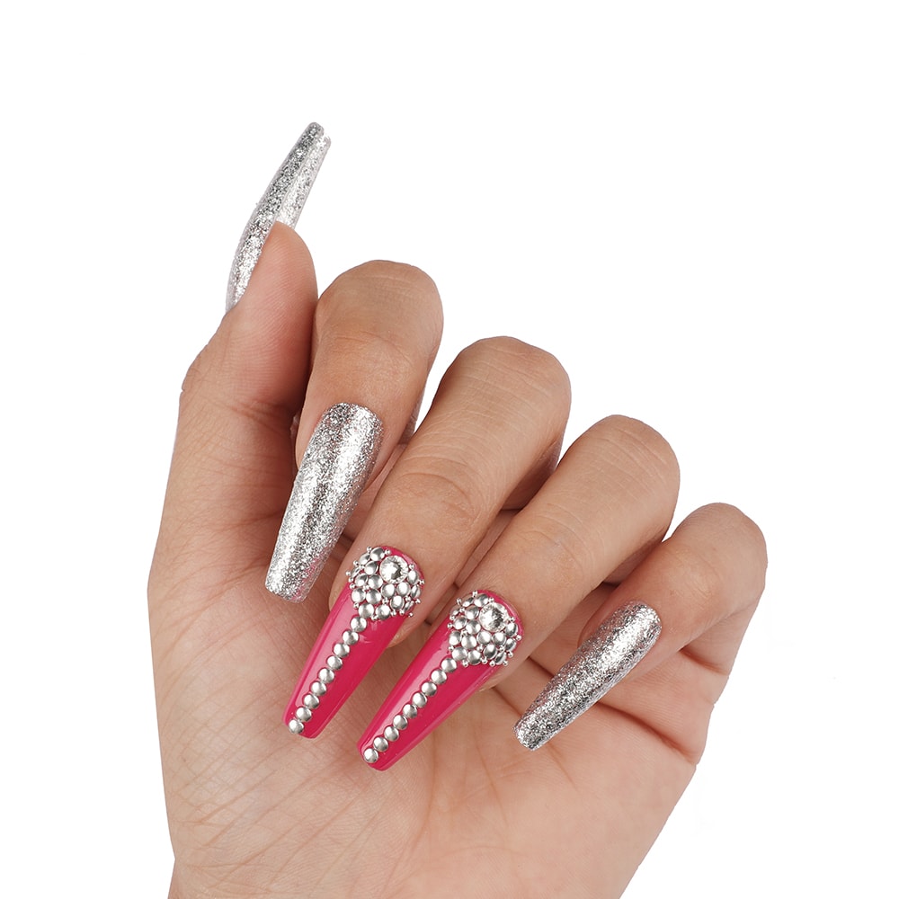 Glam Silver Beads Palette consists of many delicate and round shapes of silver stones which are high in quality and have perfect shine. It is mainly used to add wow factor on the nails. One box of palette contains many pieces of silver stones. It looks awesome on any nail length and makes the nails look elegant and special. It is very easy to apply and can be stick with décor gel, nail paint or UV/LED top coat. GLAM Silver Beads Palette can be applied on fake nails and on any extensions. It is UV/LED support and needs to be sealed with a top coat. No chemicals are involved in the products which would lead to any reaction on the nails and skin. It is suitable for every occasion. It can be used by a professional as well as for personal use.